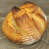 • Mit einer Gabel erzeugt man dann das Marmormuster, indem man sie kreisförmig durch beide Teigschichten sticht. Dann streicht man die Teigoberfläche glatt
