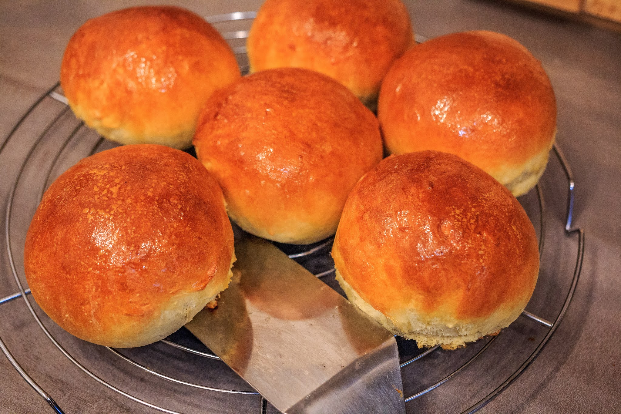 - Danach sollte es schnell gehen, also hält man am besten alles bereit. Wir machen alles selbst. Die Buns werden kurz vorm verzehr aufgeschnitten, mit Butter bestrichen, eine Prise Salz wird auf die Butter gegeben und dann werden die Buns mit der Schnittfläche für 1 min bei direkter Hitze auf den Grill gelegt. Wir haben dann immer gerne eine selbstgemachte Burgersoße und legen dann noch Salat, eingelegte Gurken, Jalapenoscheiben für etwas schärfe und gerne auch eingelegte Zwiebeln drauf.