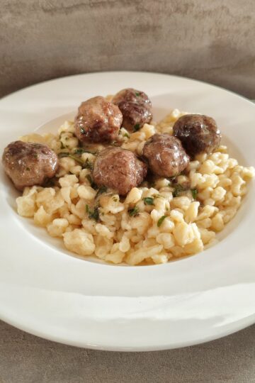Schmeckt so wie die Köttbullar. Wird das so geschrieben? Total lecker und passt super zu Knödel oder Spätzle. Bei uns sind diese Fleischbällchen ein richtiges Sonntagsessen. Ich nehme an stelle von Hack am liebsten Mett, zumindest wen ich nicht auf Kalorien achten muss 🙂